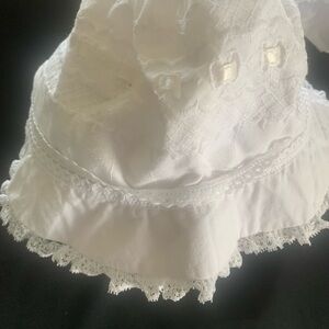 Vintage pre-owned little girl bonnets, fits roughly 2T-3T, one bonnet does have stain shown in photos, I’ve not attempted to get out.