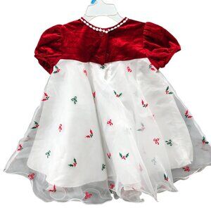 Vintage Bonnie Baby 18-24M Christmas Dress Puff Sleeve Red Velvet Tulle Party