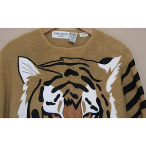 Vintage Bonnie Boerer Sweater Tan Tiger Applique Size Medium M 80s 90s Vtg