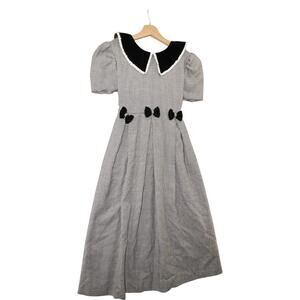 Vintage Bonnie Jean Girls Houndstooth Dress Black Velvet Collar Bows Size 16