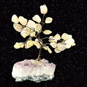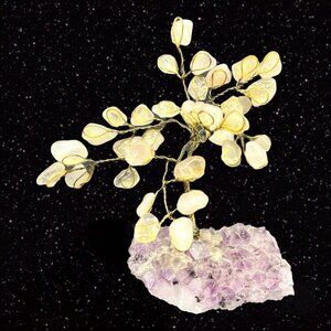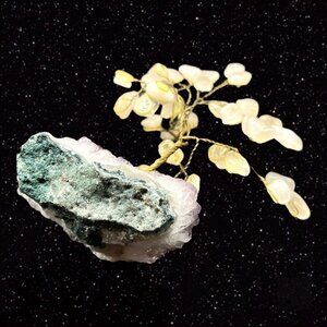 Vintage Bonsai Small Stone Tree On Mineral Rock 4”T 3”W