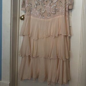 Vintage Bonwit Teller pink, sparkling designer evening gown XL