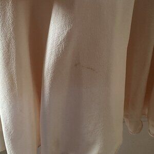 This vintage Bonwit Teller designer gown attended galas when glamour reigned in Washington, DC. My camera and lighting could not do justice to its beautiful pale pink color. Approximate dimensions: 20" across shoulder; 26" across hips; 26" sleeves, 56" long Approximate size: XL-XXL Great condition. Small stain on the bottom front ruffle (see picture).