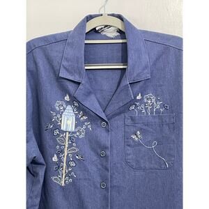 Vintage Bonworth Shacket XXL Blue Embroidered Birdhouse Floral Boho 3/4 Sleeves