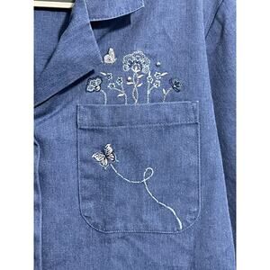 Vintage Bonworth Shacket XXL Blue Embroidered Birdhouse Floral Boho Cottage Core 3/4 Sleeve, in great condition. Unable to read the size tag and material tag. Please see measurements. I estimate the size at XXL