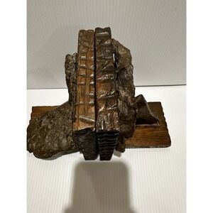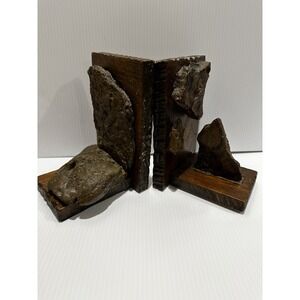 Vintage Bookends Genuine Fossil Handmade Original Woodwork Creekbed Artifact USA
