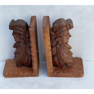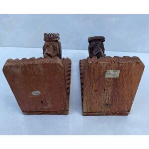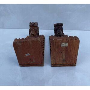 Vintage Bookends Pair Carved Wood Shelf Art Tribal Hand Crafted Brown 4.5x7"