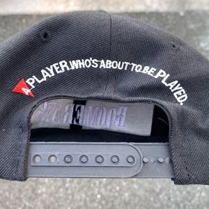 Vintage Boomerang Movie Promo Black Snapback. What a lucky guy Eddie Murphy was to have Robin Givens and Halle Berry as his co stars for this movie. The hat is an original item from that movie in 1992. On back it says A Player Who’s About To Be Played in white and red embroidery. The Soundtrack was also a good one featuring Boyz II Men, Babyface, and A Tribe Called Quest. The hat shows minor age but may have never been worn or lightly worn.