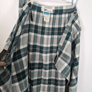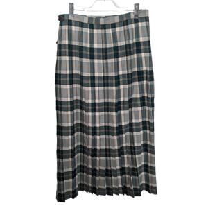Vintage Border Glen Plaid Long Maxi Skirt Kilt Green White Wool Blend Made in UK