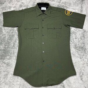 Vintage Border Patrol Shirt Mens Medium Green Sleeve Patch Uniform