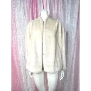 Vintage Borgana Faux Mink Fur Cream Swing Open Front Jacket Size Large