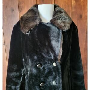Vintage Borgazia Large Faux Fur Coat Dubrowsky & Joseph Black Brown Cuffs Collar