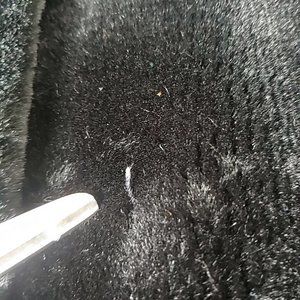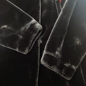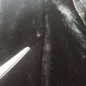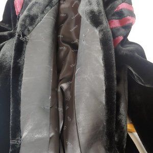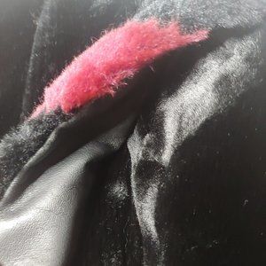 A few slight flaws on faux fur. Please see pictures. Still looks great, so beautiful! No size tag. Measures a women's Medium. Please check measurements in description. Some marks on lining trim (not sure if it's leather or faux leather, as there are no fabric content tags.