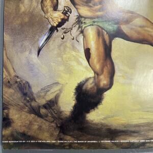 This vintage 1979 fantasy art poster features “The Maker of Universes” by iconic Peruvian-American artist Boris Vallejo, renowned for his legendary sword-and-sorcery illustrations. This officially licensed print is marked at the bottom with full artist attribution and copyright details, adding to its authenticity and collector value.