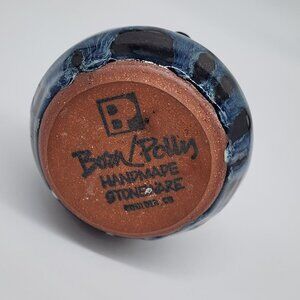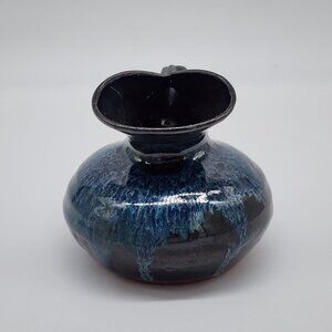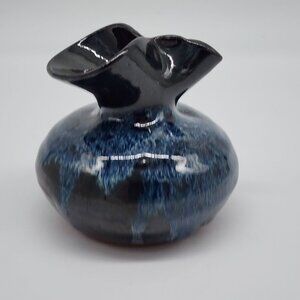 Vintage Born Polly Studio Pottery Vase Pinched Flared Rim & Blue Drip Glaze