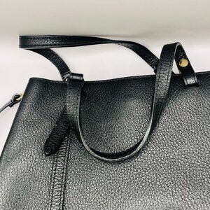 Stunning vintage Italian leather handbag from Borse in Pelle featuring beautiful black pebbled leather and luxurious gold-tone hardware. This sophisticated bag exemplifies the quality craftsmanship that Italian leather goods are renowned for.