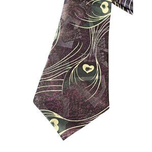 This vintage tie from Bossanoba features a captivating abstract floral and heart design in purple and cream hues. The luxurious silk fabric adds a touch of elegance, making it an ideal accessory for anyone with a penchant for timeless fashion.