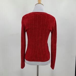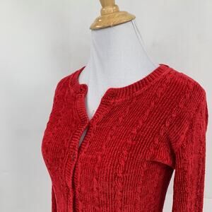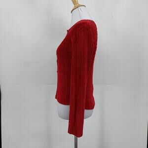 Vintage Boston Proper Cardigan Womens XS Extra Small Red Chenille Knit Button