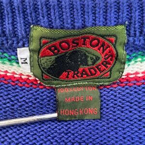Vintage Boston Traders Mens Knit Sweater Striped Crew Neck Tight Knit Med Navy