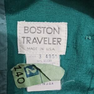 Craft a polished, professional look with the Vintage Boston Traveler Pencil Skirt. Tailored for a regular size 10, this knee-length skirt in a classic green hue is ideal for a range of occasions, from business meetings to casual outings. Its straight and pencil style flatters the silhouette, while the pleated back adds a touch of sophistication. Made in the United States, the skirt features a comfortable fabric with a mid-rise waist, ensuring a smooth fit throughout the day. It's lined for extra comfort. Whether you're dressing for the office or an evening event, this skirt's enduring style and quality are a timeless addition to any wardrobe.