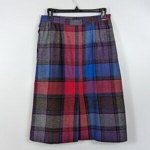 Vintage Boston Traveler Wool Blend Knee Length Plaid Skirt Made in USA