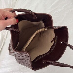 Details: Beautiful women leather in brown, some staining on the inside pocket (pictured in photo).
