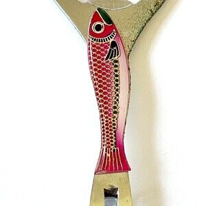 Vintage Bottle Opener Rainbow Trout Fish Red Metal Barware Japan Handheld