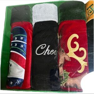 Vintage Bottle Totes Gift Set Of 5 Costco Christmas Holiday Snowman Velvet