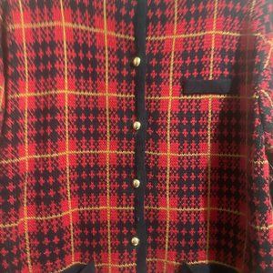 Vintage Boundary Waters tartan plaid heavy cardigan sweater with gold buttons. Marked as Medium