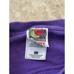 This vintage T-shirt from the 1990s features a classic fit with a crew neck and short sleeves. The shirt is made of comfortable and breathable cotton knit material, which makes it perfect for all seasons. The double-sided graphic print on the shirt showcases a purple color with a jazz-inspired theme, featuring characters such as Stitch, Skull, Bones, and a saxophone.