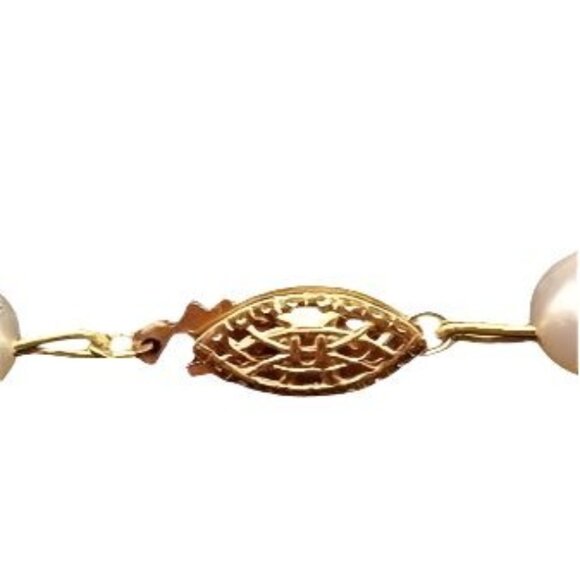 This vintage necklace exudes timeless elegance with genuine cultured freshwater pearls and a 14KGF clasp. A refined piece reminiscent of mid-century sophistication.