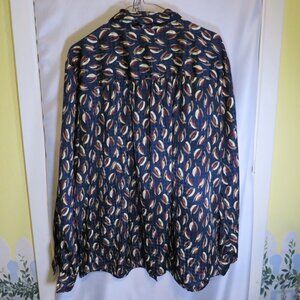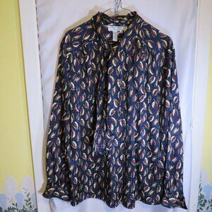 Vintage Bow Tie Blouse Leaf Print Dark Academia Button-Down Shirt long sleeve