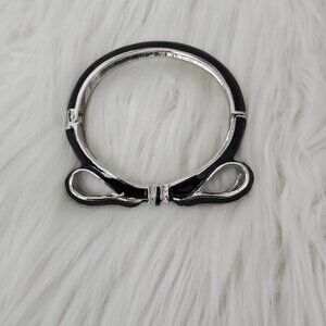 Vintage Bow Y2K Black And Silver Tone Hinged Bangle Bracelet
