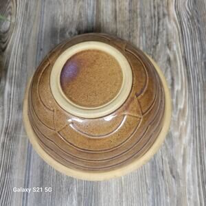 Vintage Bowl Stoneware Mixing Bowl, Brown Chevron Ribbed