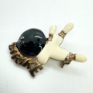 Vintage Bowling Strike Enamel and Metal Brooch Lapel Pin White Black Gold Tone