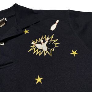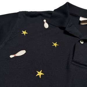 Vintage Bowling World Embroidered Polo Shirt Black Unisex Sz M
