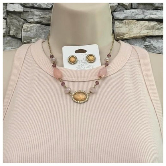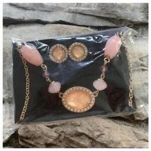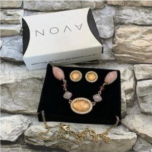 Brand new in box, vintage old stock, Avon Misty Pink Cabochon Beads Rhinestones Necklace & Pierced Post Earrings Gift Set. Necklace measures 18” long with 2” extender. Earrings measure 1/2” diameter. What you see is what you will receive. 100% authentic. Box has minor shelf wear.