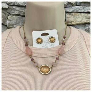Vintage Box Avon Misty Pink Cabochon Beads Rhinestones Necklace Earrings New Set