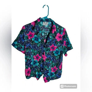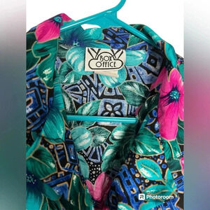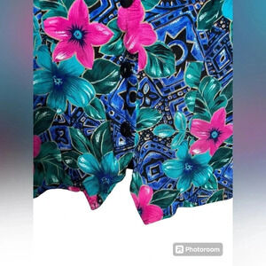 Vintage Box Office Tropical Floral pink and turquoise top women’s Large
