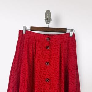 Vintage Box Office Womens Button Front Skirt Size L Red Polka Dot Retro Pull On