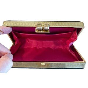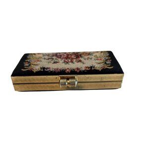 Vintage Box Style Floral Tapestry Carpet Gold Tone Barrel Clasp Clutch Purse