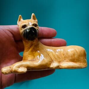 Title: Vintage Boxer Dog Clay Figurine Lying Down Puppy Cute Grannycore Cottage 4 inch