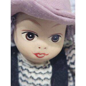 Face is the only porcelain portion - remaining body weighted - they do sit up. Yarn hair. small price barb holes on girls sleeves. faint spot on boys pants. spot on girls foot (see pics) shipped in box smoke free
