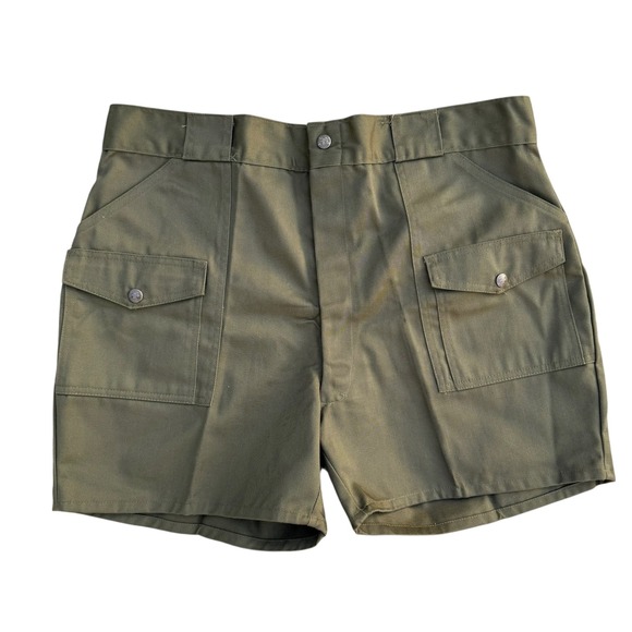 Keywords: Boy Scouts of America, Official Uniform, Vintage Shorts, Mens Shorts, Olive Green Shorts, Size 40, Retro Clothing, BSA Shorts, Collectible, Outdoor Apparel, Hiking Shorts, Casual Wear, Polyester Cotton Shorts, Vintage Fashion