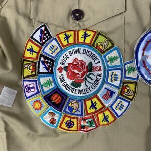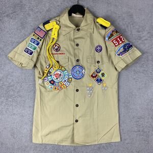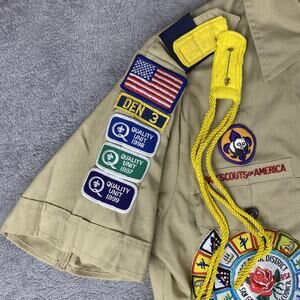 Vintage Boy Scouts of America Shirt Mens Small Khaki Cub Scouts Patches Made USA