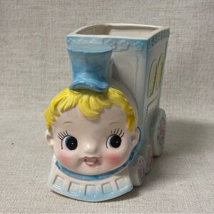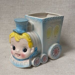 Vintage Boy Train Planter Made in Japan Collectible Home decor Baby Room Decor in excellent condition