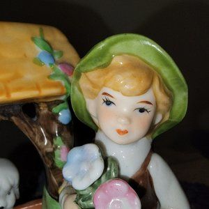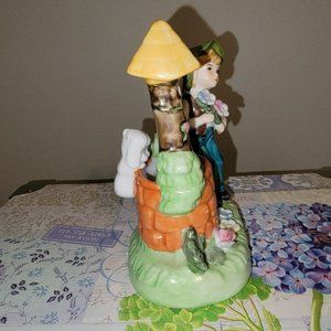 Circa 1960's boy holding flowers with dog at the wishing well figurine. Made in Korea . Please see photos for overall condition, wear & tear. The photos are part of the description. Approx. size: 4 3/4" tall x 3 5/8"" wide x 2 3/8" deep. Needs cleaning. Could shine with detailed cleaning - will leave method and extent to knowledgeable new owner. Has been in a display cabinet for decades. Smoke free home.