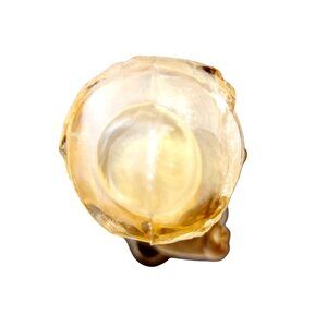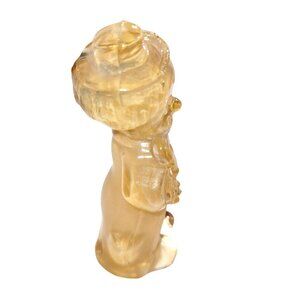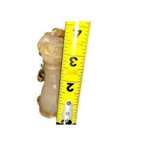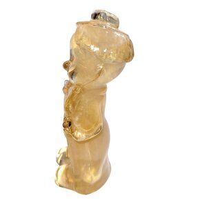 This vintage Boyd Art Glass Chuckles figurine showcases a charming design in pink slag glass. It glows beautifully under black light, adding to its collectible appeal.