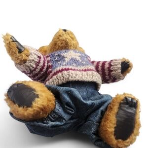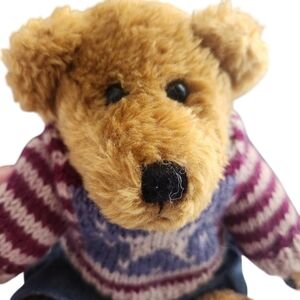 This Boyds Bears Eddie Bean Bauer plush bear is a delightful collectible for any enthusiast. Standing at 10 inches, this tan bear is dressed in a patriotic sweater and denim overalls. Crafted from high-quality bean-filled material, this vintage 1996 bear is a great find for collectors. Ideal for display or as a charming decorative piece, it adds a touch of nostalgia and warmth to any space.