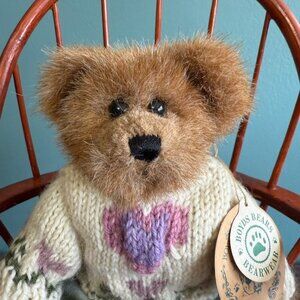 Vintage Boyds Bear Plush 8" Edmund T. Bear 1997 w Heart Sweater Pastel Bibs Tags